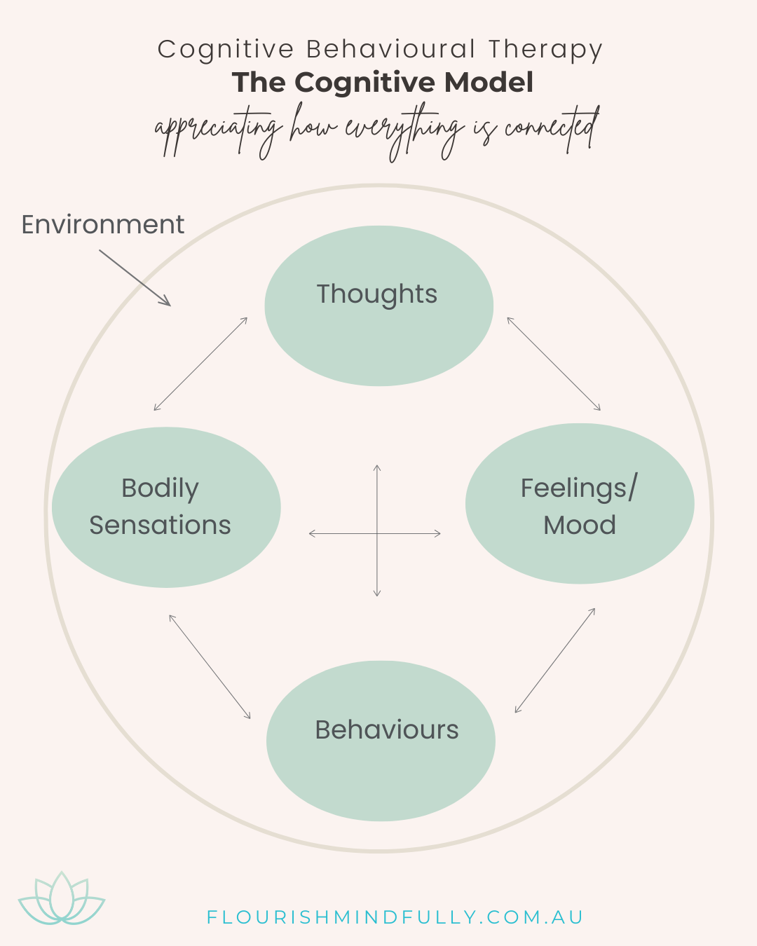 Self-talk is a form of thinking — and our thoughts, feelings, and behaviours are all deeply connected - the Cognitive Model, in Psychology.